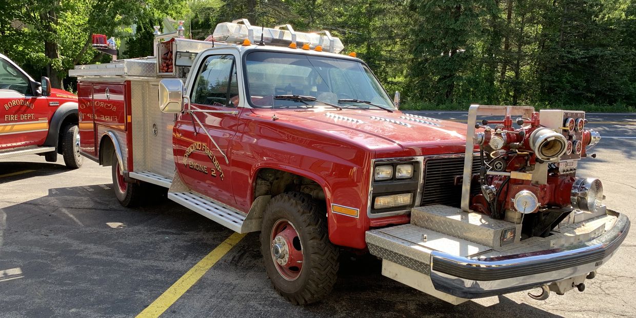 In February of 1947 Reginald Nodine's hardware store in Borodino caught fire. Residents conducted a bucket brigade to fight the flames while waiting for the Skaneateles Fire Department to respond. Together, they were able to save the local store. Soon after, several community elders thought it would be wise to form a fire department for the Town of Spafford. A small group of residents met with other local fire departments and held several town meetings discussing options. These meetings, held at the Borodino Grange and Spafford School House, had overwhelming turnouts in support of the venture. Phil Pendergas donated land in Borodino for its department and Bill McKeen donated the old gas station in Spafford for the southern station. These men visited the Aurelious Fire Department for building ideas and two fire stations were designed and built for $1,500 each. The Town of Spafford Fire Board of Commissioners was established in 1948 with the help of Jim Burlton, Gordon Eibert, and Hoyt Ackles and charged with running the fire district with two independent departments. The district's first fire truck was a farmer's Ford pickup truck which they used to fill with milk cans to draw water. Eventually a fire truck with a Brockway Chassis, a rear portable pump, and 200 feet of hose was purchased for fire suppression. A local resident, George Talcott, built cabinets into the truck's chassis to carry supplies. As the years progressed, public bonding was raised to build a larger structure to house addition equipment and apparatus. ~Submitted by Phil Haines